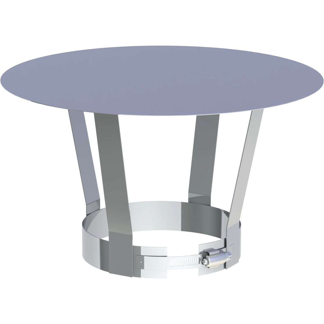 Daszek montuje się na rurze wkładu kominowego poprzez nałożenie go na rurę i skręcenie metalowej opaski zaciskowej.