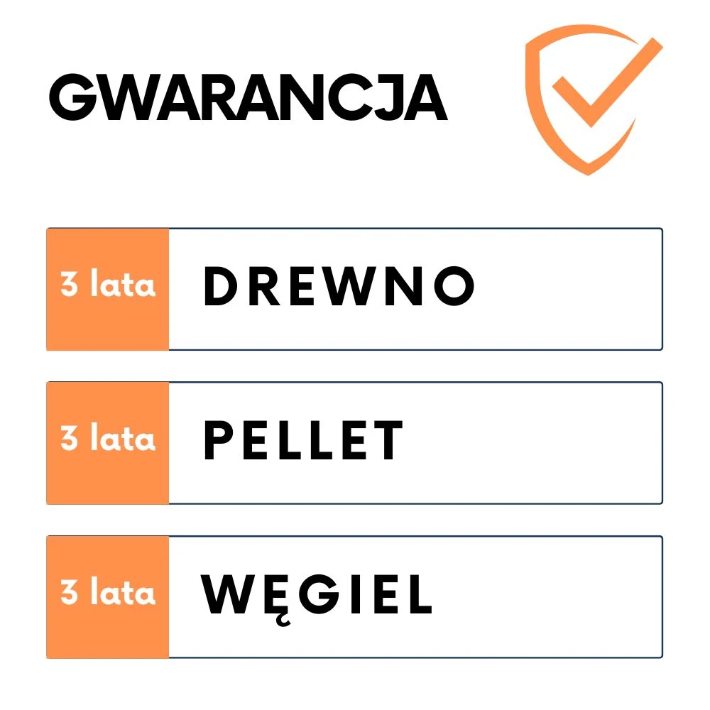 | Gwarancja Producenta | W suchym trybie pracy: węgiel 3 lata, drewno 3 lata, pellet 3 lata, ekogroszek 1 rok |