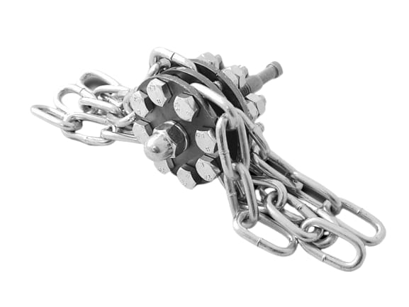 Głowica z łańcuchami służy do mechanicznego czyszczenia kominów ceglanych. Całość została zaprojektowana tak, że możliwa jest wymiana łańcuchów czyszczących. Głowica zbudowana jest z 8 łańcuchów czyszczących, które bardzo dobrze radzą sobie z sadzą szklistą. Produkt przeznczony jest do czyszczenia najcięższych zabrudzeń w kominie. Produkt wyprodukowany w Polsce.