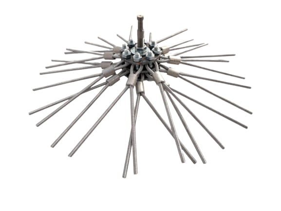 Służy do czyszczenia kominów, wkładów kominowych i ceramicznych z zabrudzeń. W głowicy znajduje się 16 sprężyn, które wprawione w ruch obrotowy usuwają sadzę. Wspomniane sprężyny po zużyciu można wymienić na nowe. Głowica nadaje się do usuwania twardej sadzy szklistej z kominów. Można stosować w kominach o różnych przekrojach: okrągłych, owalnych i kwadratowych. Należy dokładnie dopasować średnicę głowicy do realnego prześwitu zabrudzonego komina (rzeczywisty przekrój komina uwzględniając grubość sadzy, która pomniejsza światło przewodu kominowego).