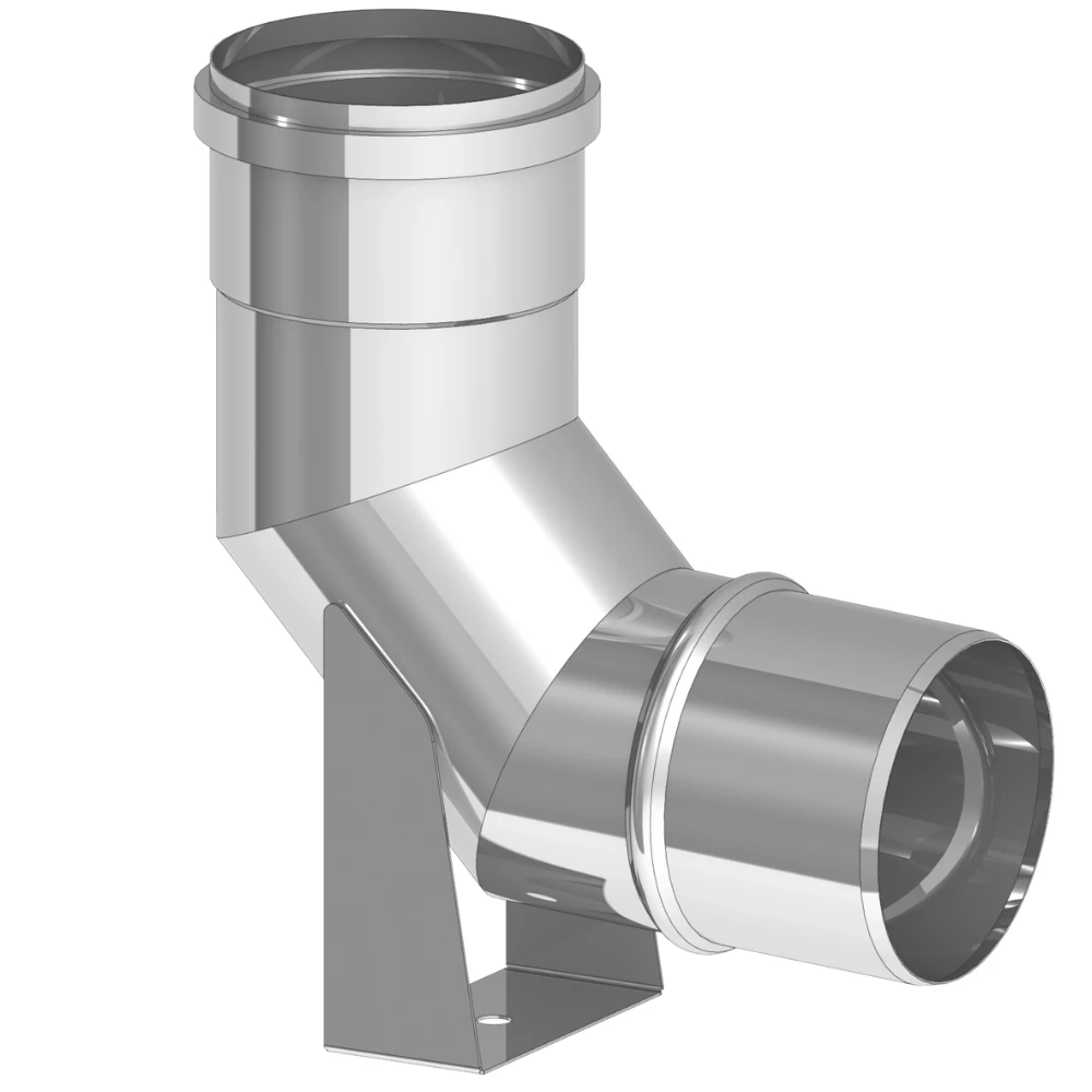 Kolano z podporą 90° fi80 kwasoodporne, to element systemu kominowego, który wykonany jest z wysokiej jakości stali kwasoodpornej, przeznaczony do odprowadzania spalin z gazowych kotłów kondensacyjnych.