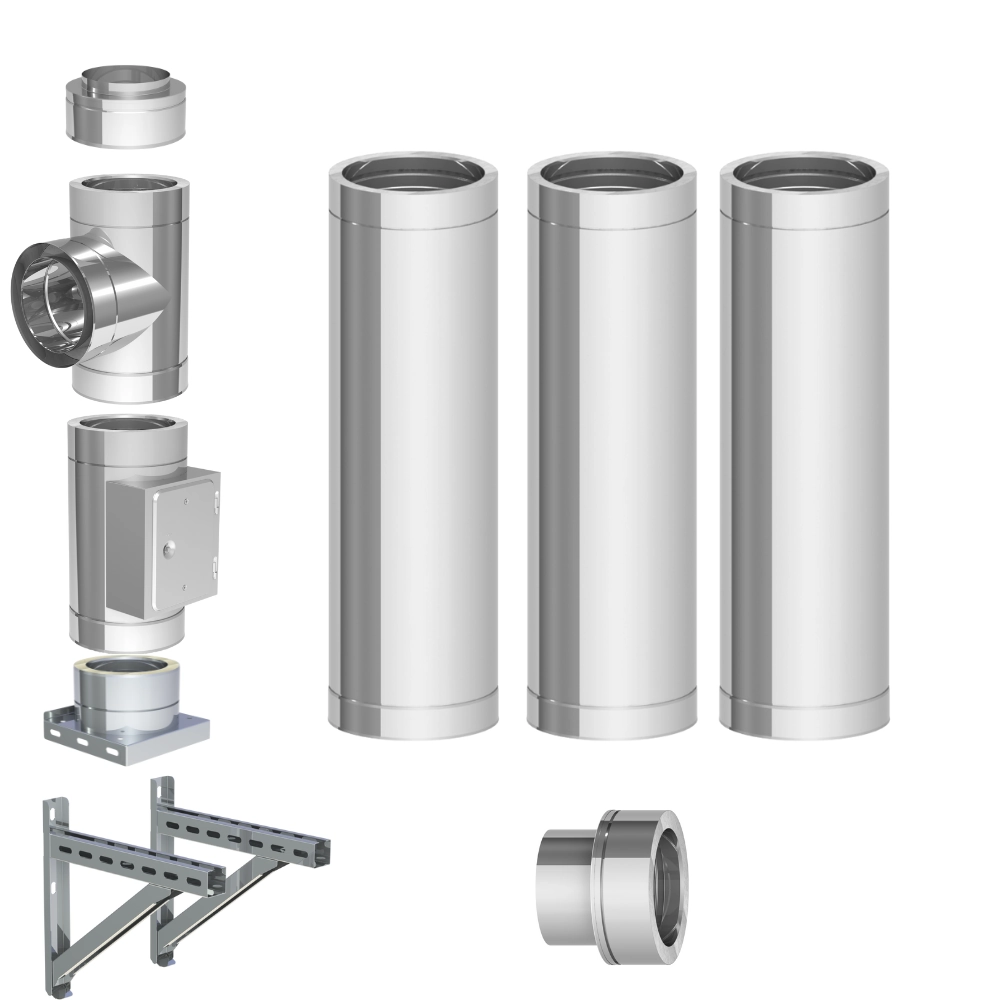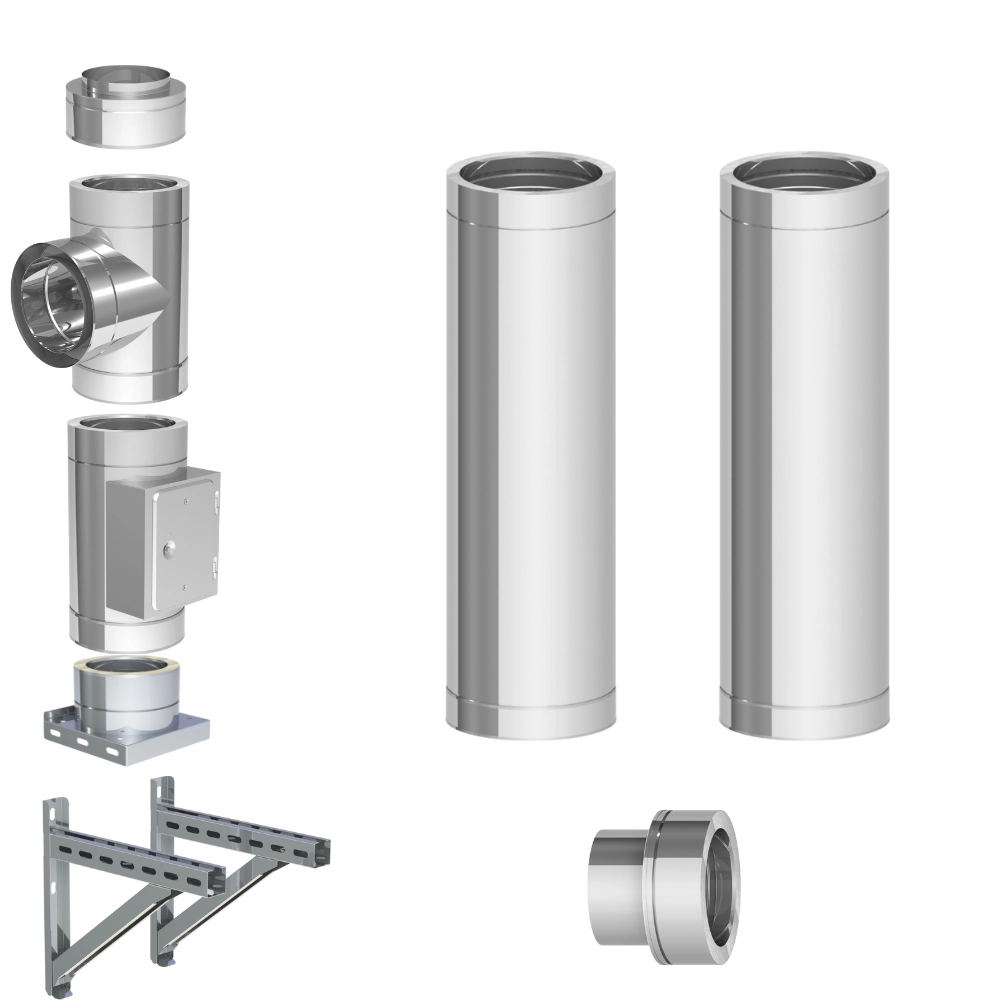 Szeroki zakres średnic a także duża gama elementów daje możliwość dowolnej konfiguracji systemu. Dodatkowe elementy takie jak przejścia dachowe czy dodatkowe obejmy znajdują się poniżej w sekcji Produkty powiązane. W naszym sklepie znajdziecie kominy dostępne w różnych rozmiarach i wersjach. Poszczególne elementy systemu połączymy ze sobą dzięki łączeniom kielichowym.