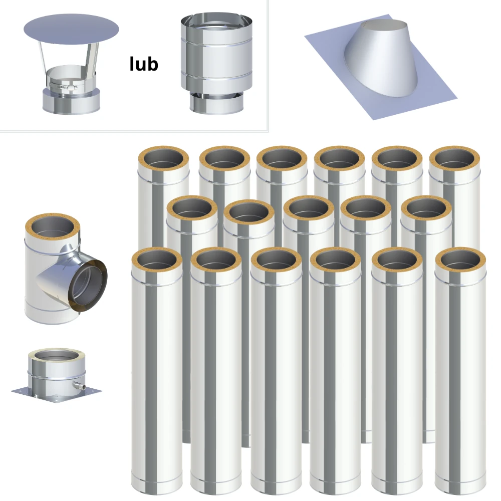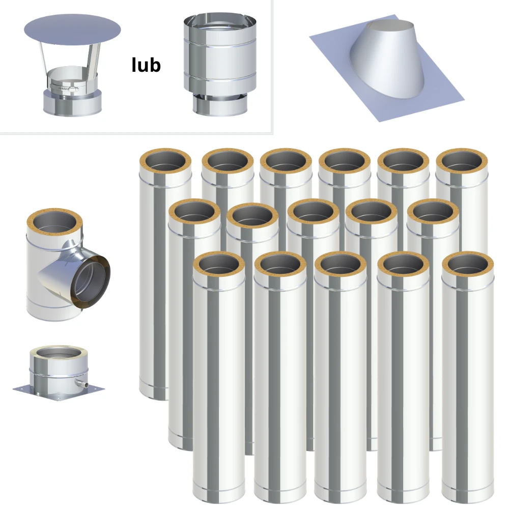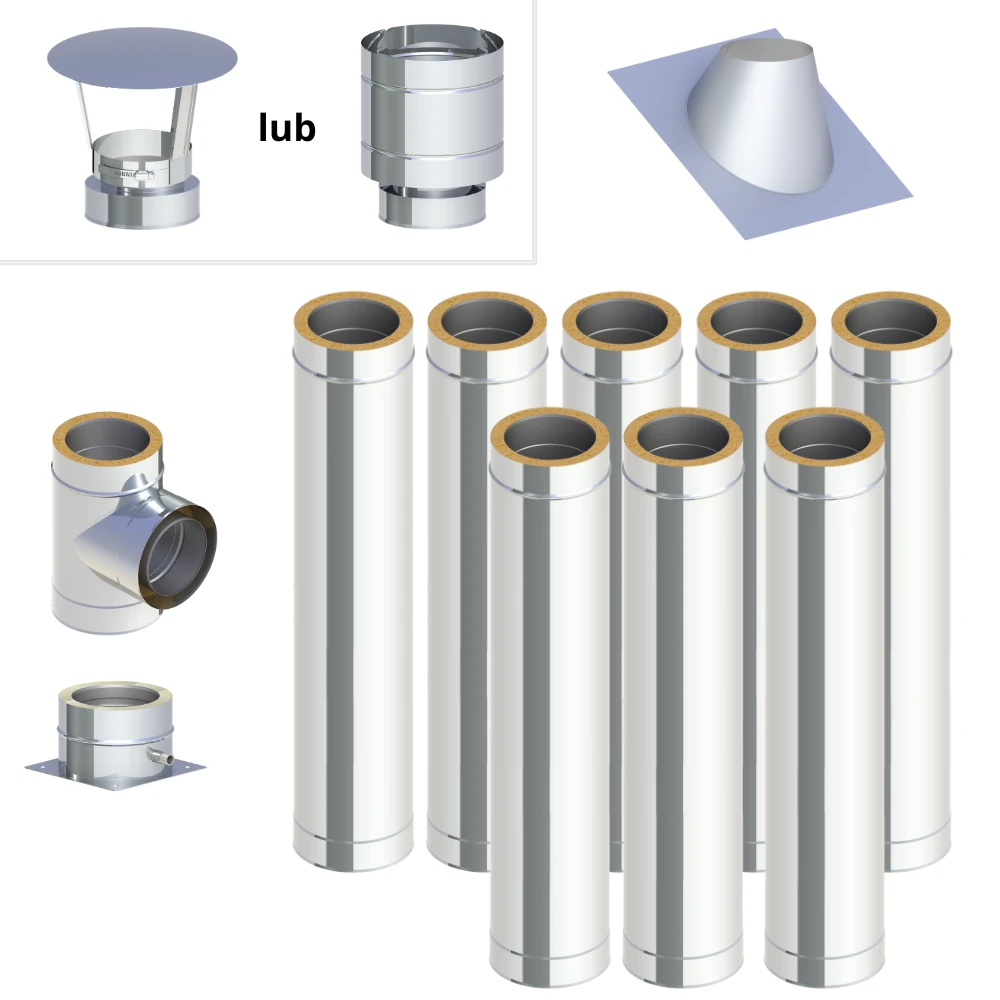 Komin wentylacyjny fi160/210 izolowany stalowy nierdzewny stojący z przejściem przez dach