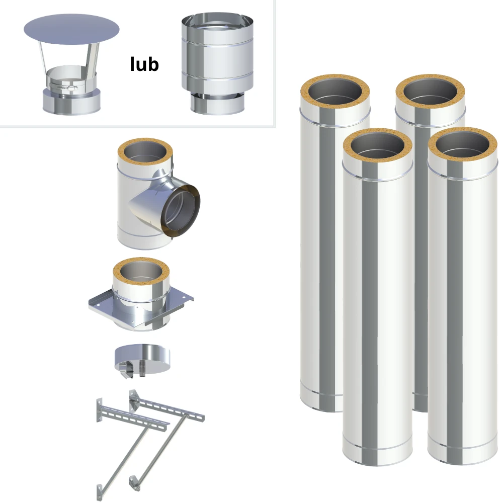 - Dwa warianty zakończenia – możesz wybrać daszek lub deflektor, w zależności od potrzeb instalacji.
