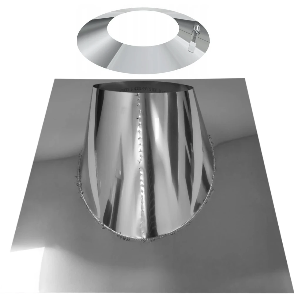 Przejście dachowe do komina stalowego to element systemu odprowadzania dymu, który służy do przeprowadzenia komina przez dach. Kołnierz przeciwdeszczowy zakrywa przerwę dylatacyjną między płytą, a rurą kominową.