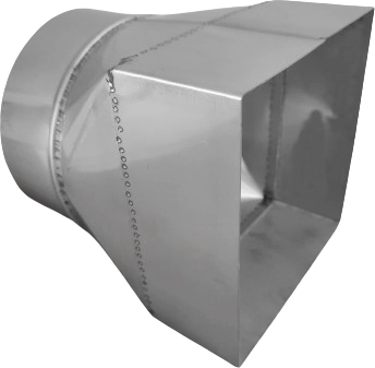 Redukcja kominowa koło nypel fi150 - kwadrat/prostokąt żaroodporna 1.4828 gr. 0,8 mm