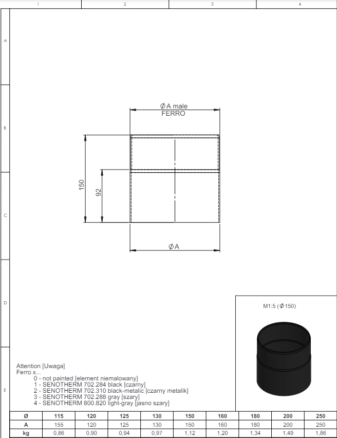 Konstrukcja elementów przyłączeniowych pozwala na odprowadzanie dymu. Elementy wykonane są trwałej stali żaroodpornej o grubości 2mm i pomalowane wytrzymałą farbą czarny mat, która jest wytrzymała na wysokie temperatury. Ten element został wykonany i pomalowany z dbałością o szczegóły i przy zachowaniu wysokiej jakości podczas całego procesu produkcji. Odporność na temperaturę wynosi do 600°C.