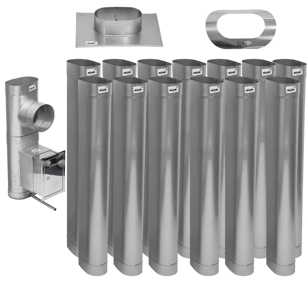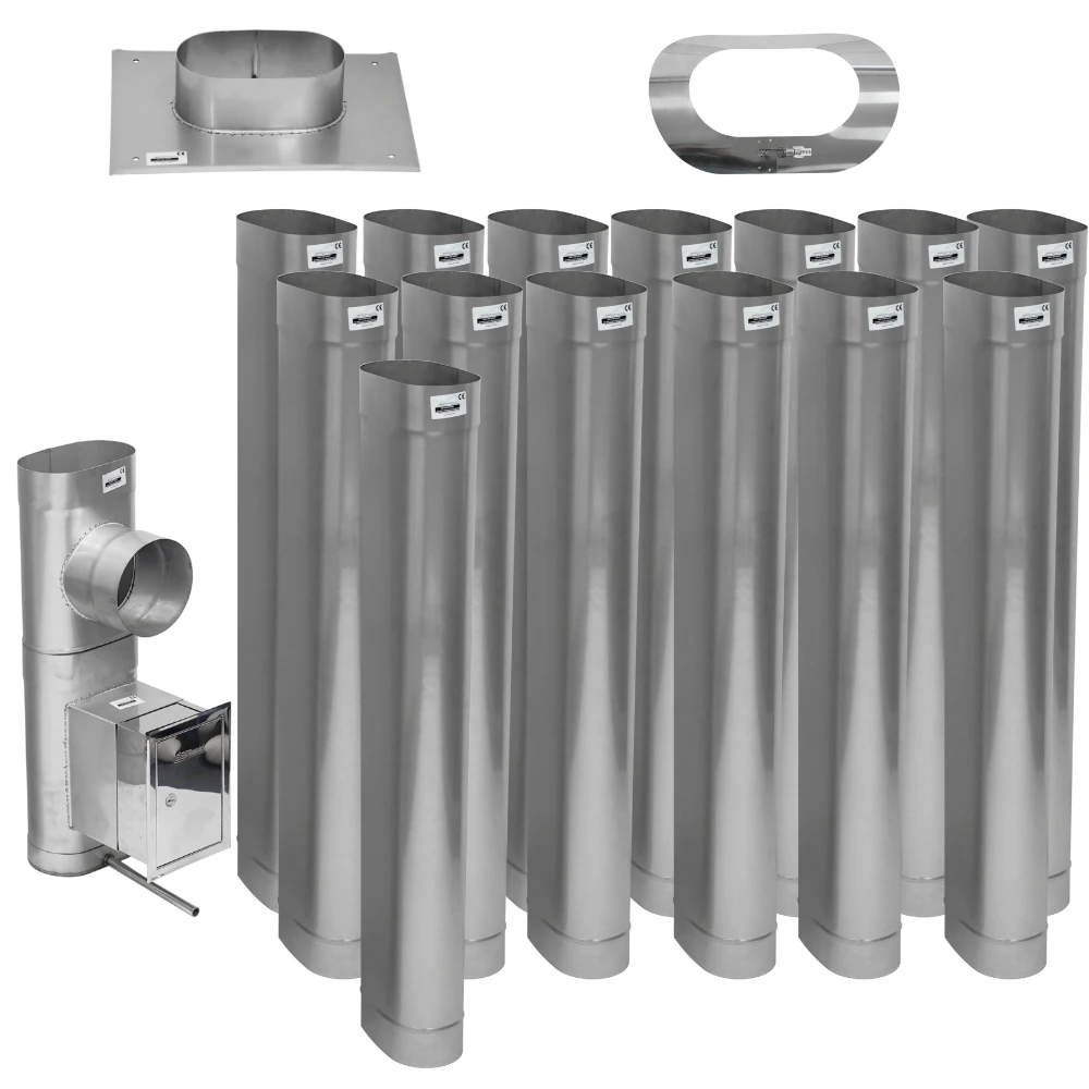 | Zawartość zestawu | płyta kominowa, rury kominowe, trójnik 90°, wyczystka, drzwiczki z przedłużką, odskraplacz |
