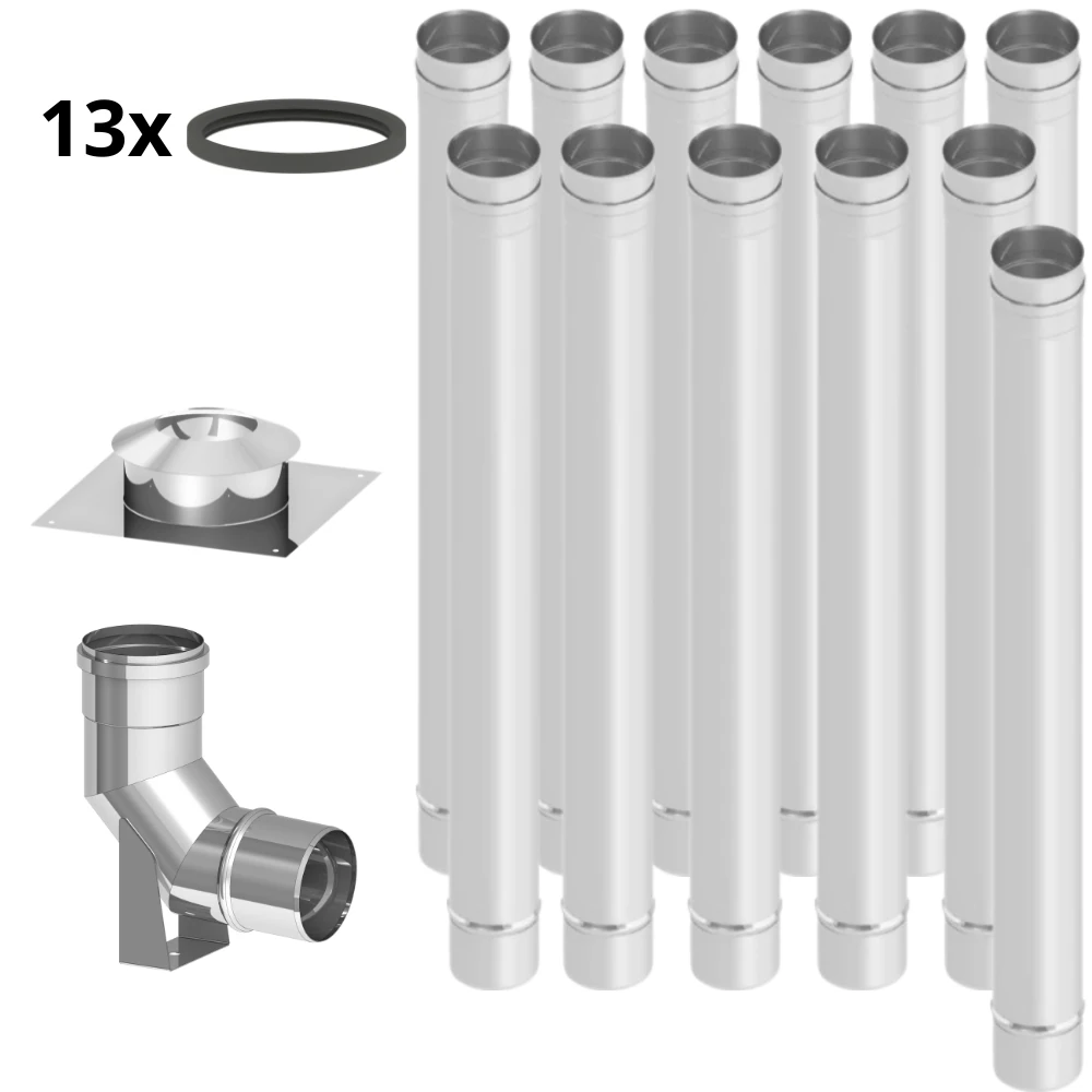 | Zawartość zestawu | daszek (opcjonalnie), płyta kominowa, kołnierz przeciwdeszczowy, rura 1m - 12 szt., kolano (wariant do wyboru) |