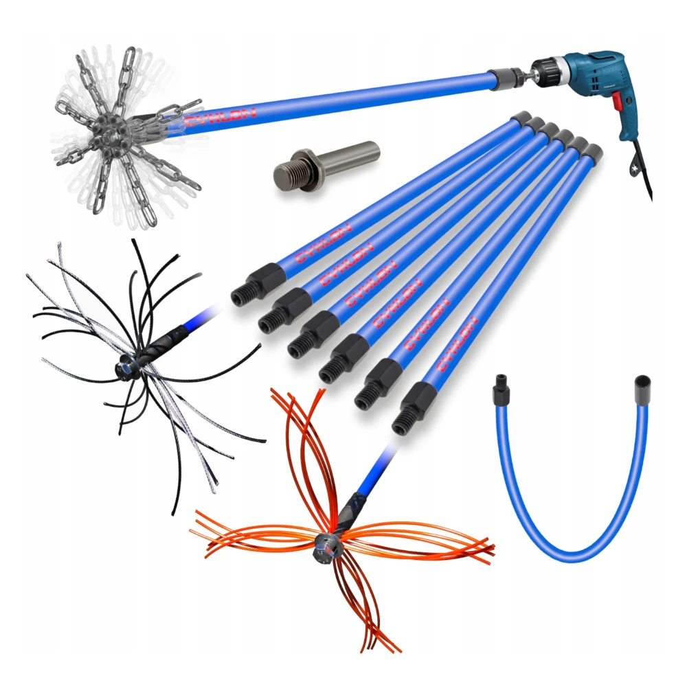 Zestaw do czyszczenia komina od dołu Cyklon – obrotowa szczotka współpracująca z wiertarką lub wkrętarką, długość 4m.